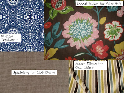 These are all very basic pieces (I dare say blah). But look what little fabric in the form of upholstery, pillows and window treatments could do for that space.